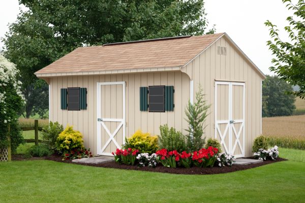 With options like cream vinyl siding, white trim, green shutters, and weathered wood architectural shingles, the Cottage Shed is the perfect outdoor addition to inject a bit of quaint elegance into your yard!